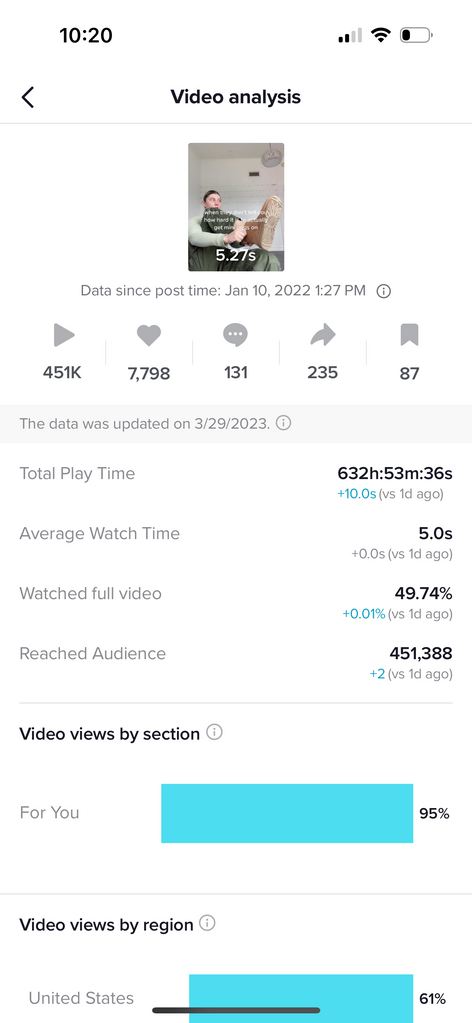I've had a number of videos go viral; reviewing and learning from the analytics allows me to continue to grow & achieve even better results